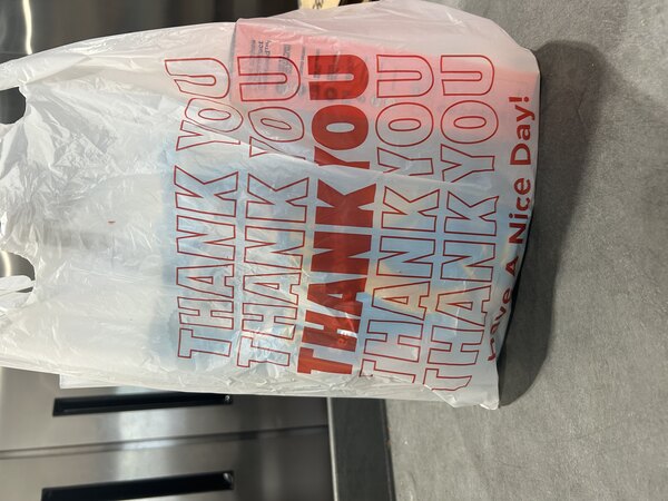 Customers appreciate these plastic "Thank You" bags for their affordability and functionality. They are commonly used for to-go orders and light retail items, offering a decent size and durability for everyday use. Opinions on the bag's thickness and ease of opening vary, but overall, they are considered a good value for the price.