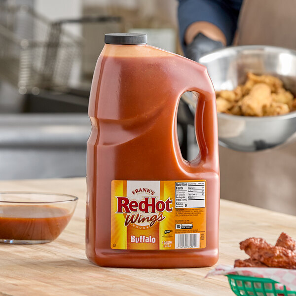 Its convenient handle and resealable cap make it easy to transport, store, and even dispense into smaller bottles for table service so your patrons can add just the right amount to their foods. Hot, spicy, and delivering flavor that will tempt your customers back for more, Frank's RedHot Buffalo wing sauce is a top choice full of original, flavorful taste!