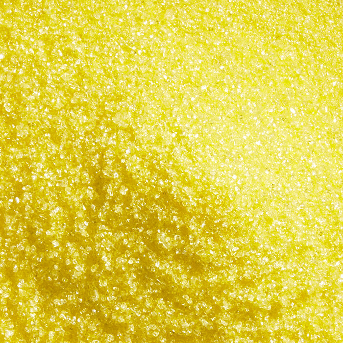 A great addition to any specialty baker and caterer's arsenal, this sanding sugar is ideal for decorating and garnishing cookies, scones, cupcakes, muffins, and candies. Its yellow color is great for matching your customer's event's color schemes or theme, creating festive sweets for the holidays, or simply for giving your treats a unique pop of color and glimmer!