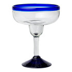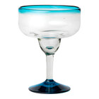 Provide your guests a delightful way to savor their favorite drink with this 10 Strawberry Street Aqua Rim 15 oz. margarita glass! Crafted from hand-blown Mexican glass, it features a classic design with a wide bowl and a stem with a solid base. The crystal-clear glass showcases your flavorful options while the vivid, aqua blue rim and base add a pop of color, offering an enticing presentation of your delicious margaritas or signature blended drinks.