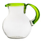 Provide your guests a delightful way to savor their favorite drink with this 10 Strawberry Street Aqua Rim 80 oz. glass pitcher! Crafted from hand-blown Mexican glass, it features a functional design with a wide, curved body and sturdy handle. The crystal-clear glass showcases your flavorful options, while the vivid, aqua blue rim, handle, and spout add a pop of color, offering an enticing presentation when serving water, lemonade, iced tea, and sangria.