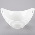 Bring an elegant and timeless look to your buffet or table service with this 10 Strawberry Street WTR-7WVBOATBWL Whittier 24 oz. white boat bowl. Built to last for any occasion, this product is an excellent choice for commercial dining rooms, from traditional to contemporary! Not only does it add an upscale element to your table setting, but the classic color and wave texture is sure to make your vibrant fresh foods stand out for an appealing presentation. Ensuring durability to withstand frequent use, this item is great for serving your signature dishes in style.