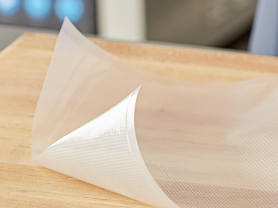 - Layer of textured mesh material for positive seal and total air removal