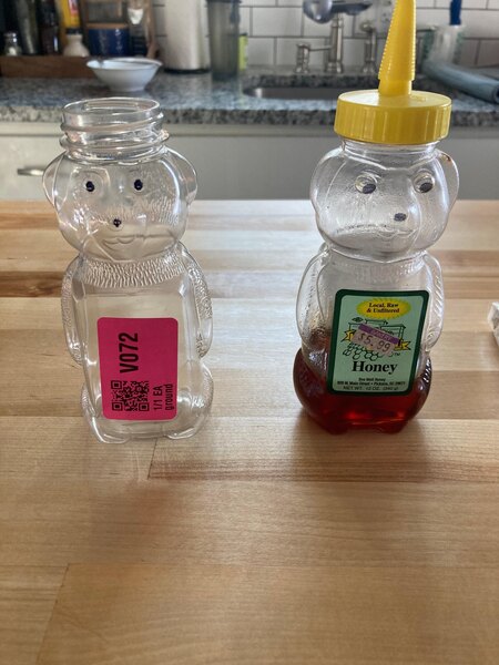 This 8oz honey bear container is a perfect replacement bottle for most honey bottles you buy at the store. It’s the same size, shape, and even the lid fits perfectly on this new bottle! I am very impressed and would recommend this product if you need a replacement or are looking for similar bottles to refill or give as a gift!