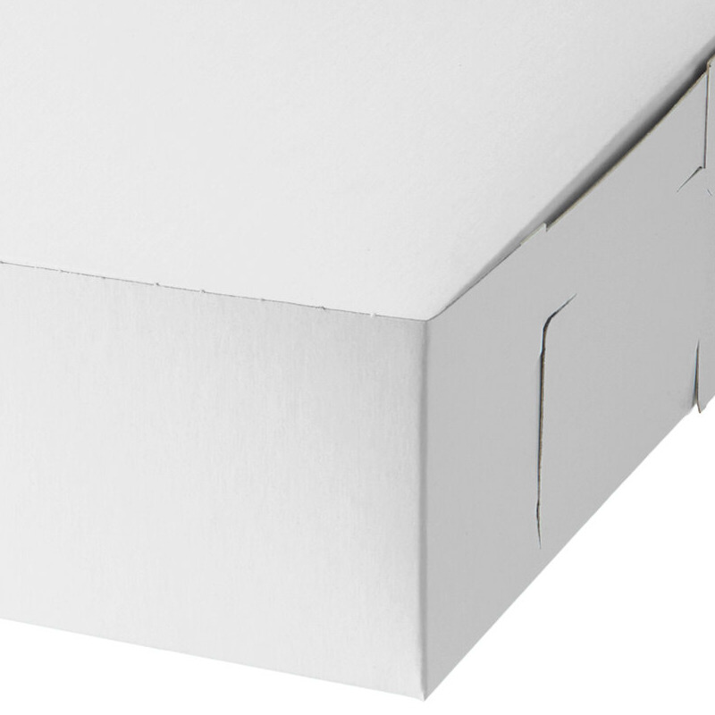 Entice your customers into taking home your delicious cakes, cookies, or muffins with this 14" x 10" x 4" white cake / bakery box. The one piece design allows the lid to be opened easily and then tucked back into place to secure the contents. Make sure your bakery is complete by providing a durable cake box for your customers!