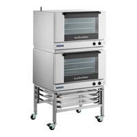 Cadco Bakerlux Station BLS-4HLD-2 Double Stacked 4-Shelf Half Size Heavy-Duty Digital Countertop Convection Ovens with LED Control Panels and Stand - 208-240VItem number79cbls4hld2