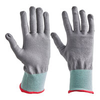 These gloves boast an EN 388 CE protection of 2X42F and ANSI level A8 cut protection without using stainless steel or fiberglass, helping to keep your employees safe. It complies with FDA food handling requirements, making this pair of gloves perfect for use in kitchens or food trucks. Better yet, the fingertips have touchscreen capabilities for greater functionality and efficiency. These gloves offer an ideal fit that is suitable for most hand shapes. The gray color offers a stylish, modern look, while the hem color helps distinguish between different sizes. This pair of gloves is sure to improve both safety and productivity in your establishment.