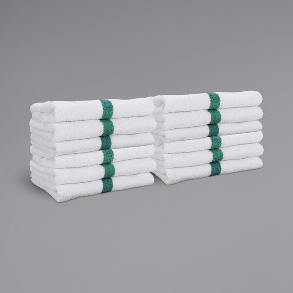 Hospeco Power Towels 22" x 44" Green Center Stripe 100% Cotton Bath / Gym Towel - 6 lb. - 60/Case