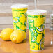 Serve your guests refreshing and thirst-quenching lemonade in this 24 oz. tall paper lemonade cup! This cup is a perfect size for large drinks with its 24 oz. capacity and tall profile. The eye-catching yellow and green lemon design, complete with a vibrant "Lemonade" print, creates an enticing presentation at your concession stand, snack bar, amusement park, or food truck. Plus, the tightly rolled rim helps ensure a tight seal when paired with a compatible lid (sold separately), reducing the risk of drips and spills for your customers.