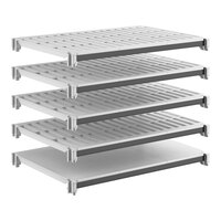 Our selection of Cambro shelving includes the Premium and Elements lines, both of which offer durability, versatility, and dependability. Shelving systems from these collections are designed for high-volume establishments and can be used to transfer heavy items, like canned goods, food pans, warehouse supplies, and other items, around your business. Plus, many of these Camshelving® products are safe for use in walk-in freezers and refrigerators.