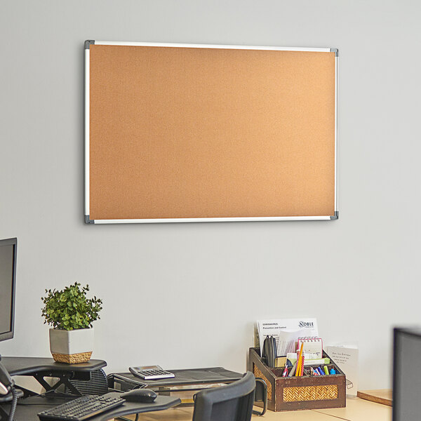 Perfect for hanging calendars, memos, notes, schedules, or other printed documents, this item is bound to enhance your workspace by keeping everyone in the loop. It features a large cork surface and a sleek aluminum frame with mounting hardware included.