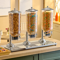 Store and present cereal, granola, and other dry food in an elegant and accessible way in cereal dispensers! Commonly used in cafeterias, breakfast diners, coffee shops, hotels, and buffets, a dry food dispenser keeps contents fresh and crispy. These versatile dispensers are also ideal for holding candy, trail mix, coffee beans, rice, and even pasta!