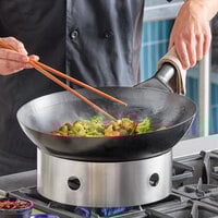 Choose a commercial wok that is made in either a Cantonese or a Mandarin style to suit the dishes you're making. Whether you want a wok that's a few inches wide or you need one that's a few feet in diameter, our options will help you find what you need. Depending on the type of control you like to have as you cook, you can use a stainless steel wok with one long handle or two side handles. Make sure to season your cast iron or carbon steel woks for the best results.