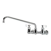 T&S B-2463 Wall Mount Mixing Faucet with 8" Adjustable Centers, 12" Swing Nozzle, 4" Wrist Action Handles, and Cerama Cartridges