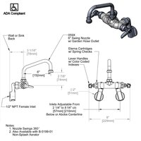 T&S B-2414-CR-SC Wall Mount Mixing Faucet with 8" Adjustable Centers, 8" Swing Nozzle, Spring Checks, and Cerama Cartridges