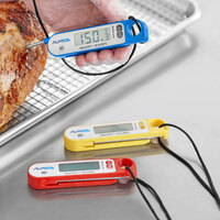 When choosing the best commercial thermometers for your foodservice establishment, it’s important to determine the tasks being performed. Digital instant read styles give quick and exact readings that are useful for baking, frying, food holding, and candy making applications. Analog options don’t require batteries and typically come with protective cases, so they can be conveniently stored in chef coat pockets. You’ll also find options that can be mounted to the wall at eye level to keep track of dining and working temperatures, as well as options that alert staff if there are any problems with the operation of certain types of equipment.