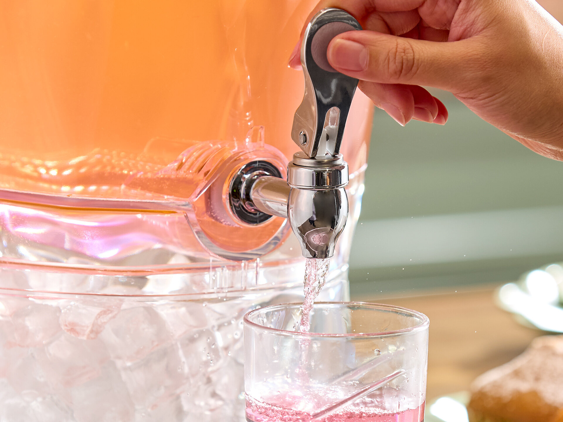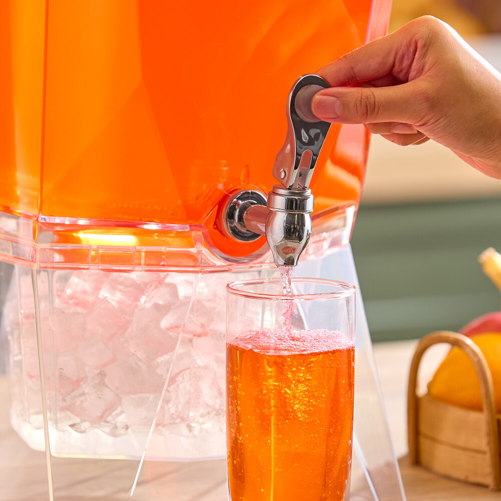 This dispenser is ideal for catered events, parties, and buffets. It has a 3.5 gallon capacity to serve your signature drinks. The durable acrylic construction provides long-lasting service, and it is easy to wipe down after use. Make beverage service a breeze with this versatile beverage dispenser!