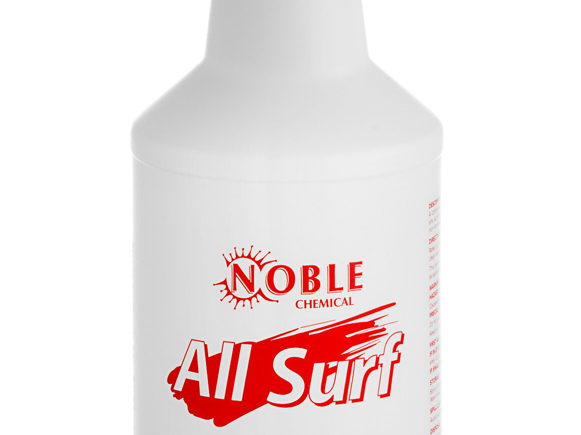 Read More ReviewsThis 32 oz. bottle is already labeled to store Noble All Surf liquid cleaner. By having a pre-labeled bottle, you'll remain in compliance with OSHA labeling regulations. Also, your employees will always know what the bottle’s contents are, preventing any confusion during the cleanup process.
