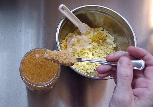 Cannot rave about this enough! Excellent taste, stores perfectly, wide mouth means I can get in there with measuring spoons, hugely convenient. Great, great product!