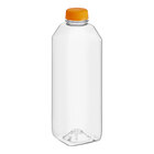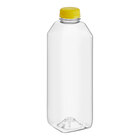 Package and sell your signature juice or beverages with this Captiva Containers 32 oz. Square PET clear bottle with yellow lid. Made of recyclable PET plastic, this bottle features a square shape that allows you to maximize your storage and display space. Its crystal-clear construction helps showcase your products, and it comes unbranded and unlabeled, allowing you to easily add your own custom label, brand, logo, or nutrition information. Use it to individually bottle fresh-pressed juice, iced coffee, or tea for sale.