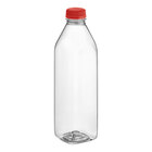 32 oz. Tall Square Milkman PET Clear Juice Bottle with Clear Lid - 104/Case