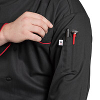 2 OptionsUncommon Chef Murano 0432 Unisex Black Customizable Executive Long Sleeve Chef Coat with Red Piping - 2XLItem number1920432br2xl