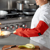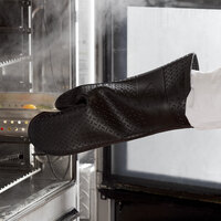 Keep your kitchen staff safe when handling hot pans and trays with oven mitts, gloves, and pot holders from popular name brands. These pot holders are designed to stand up to extremely high heat when contacting pots and pans, and will help protect your chef and server's hands from burns caused by hot surfaces! We even carry fire retardant cooking gloves that can withstand up to 535 degrees Fahrenheit. Whether you’re looking for terry oven mitts, silicone pot holders, or heavy duty neoprene oven gloves, we’ve got you covered.