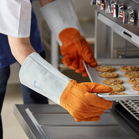 Our oven gloves will protect hands from flame, heat, and steam, while conventional pot holders provide greater flexibility when holding cookware and protecting surfaces. Choose from kitchen gloves made with Kevlar, neoprene, silicone, and terry cloth in different styles including elbow length gloves up to 24" and standard mitts that start at 10". With multiple colors to choose from, it's easy to create a color coded system to designate gloves for specific cooking tasks, like using purple oven mitts to indicate food allergy-containing products!