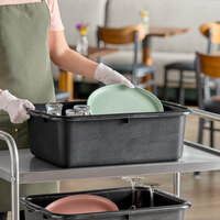 Use bus boxes to collect used flatware, dinnerware, and glassware from tables once your customers are finished eating. These tubs make it easier to carry large amounts of dirty dishes and flatware back to your dish room. Built to accommodate dozens of items at a time, these bus pans are very durable and come with sturdy molded handles. You can also place them on bussing carts, so your staff doesn't have to hold them as they clean tables.