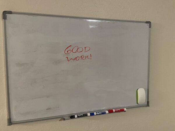 Great white board, the magnetic part makes it even better. The tray is convenient for holding markers. I will say it doesn’t come with a template for the hanging distance needed between brackets but not that big of a deal. It has a protective film on the board you peel off but it’s hard to get the edges. Other than that it has been working great for us.