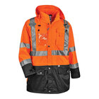 This parka has a waterproof, wind-resistant 300D oxford polyester shell with a polyurethane coating, helping to keep the wearer warm and dry. Its taped and bonded seams also help keep water out. This parka comes with a 3M Thinsulate™ liner jacket with removable sleeves and an outer shell jacket, allowing it to be worn in 4 different ways to adapt to different work conditions. The liner jacket can be zipped into the outer shell jacket to serve as a Class 3 winter parka, the liner jacket can be worn alone as a Class 2 jacket, the shell jacket can be worn alone as a water-resistant outer layer, or the zip-off sleeves can be removed for use as a Class 2 winter vest.