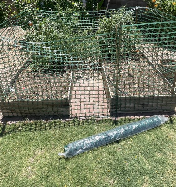 This worked out excellent for my needs. I wrapped it around some garden boxes to keep the animals out and seems to be perfect. I am going to update the supports for it but you don’t need much since it’s very light fencing. The holes are small enough and the green is a great color for this. The fencing seems to be strong and feels tough enough to last for a long time. I have plenty of leftover fencing for my next project too.