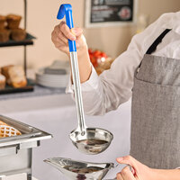 Choice 8 oz. One-Piece Stainless Steel Ladle with Blue Handle