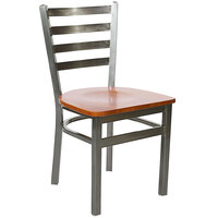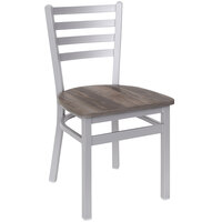 5 FinishesBFM Seating Lima Silver Mist Steel Customizable Ladder Back Side Chair with Relic Chestnut SeatItem number1632160ccsr