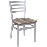 5 FinishesBFM Seating Lima Silver Mist Steel Customizable Ladder Back Side Chair with Relic Knotty Pine SeatItem number1632160ckprl