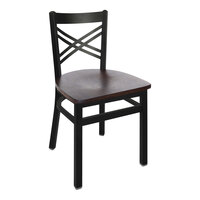 BFM Seating Darby Sand Black Customizable Metal Side Chair with Walnut Wooden Back and 2" Black Vinyl SeatItem number1632152cblvw