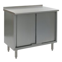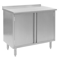 These stainless steel work tables are built in a wide range of sizes so you can pick a product that best fits the space you have in your kitchen. In addition, many of these tables come with doors to help keep stored contents sanitary throughout the day. You can even find enclosed base work tables with backsplashes to protect your walls as your staff works.