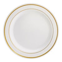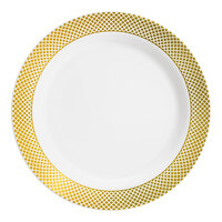 Plastic plates offer the convenience of plastic along with the high-quality look of standard dishware. Our disposable plates are constructed from durable plastic that will stand up to your busiest gala, concert, wedding, or other catered occasion. Choose from classic round plates, contemporary rectangular platters, or colored plastic plates. You’ll also appreciate our disposable plastic plates with gold and silver accent bands that have a sophisticated appeal. If hosting a cocktail hour, guests can choose a plastic plate with a drink holder, enabling them to easily hold appetizers and drinks.