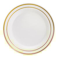 Plastic plates offer the convenience of plastic along with the high-quality look of standard dishware. Our disposable plates are constructed from durable plastic that will stand up to your busiest gala, concert, wedding, or other catered occasion. Choose from classic round plates, contemporary rectangular platters, or colored plastic plates. You’ll also appreciate our disposable plastic plates with gold and silver accent bands that have a sophisticated appeal. If hosting a cocktail hour, guests can choose a plastic plate with a drink holder, enabling them to easily hold appetizers and drinks.