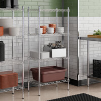 These wire shelving kits come with shelves in all standard lengths from 24" to 72" as well as posts that range from 14" to 74" tall, so you can pick the unit that best fits your storage area’s dimensions. All of our regular shelving units are NSF Listed for easy sanitation and cleaning, while their adjustability makes them perfect for food service, warehouse, and even retail applications!