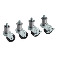Our rigid casters help your mobile equipment roll smoothly across the floor while our swivel casters increase the flexibility of your movement. Choose from non-braking casters, or use replacement casters that include brakes for added stability once you move your equipment to your desired location. These casters are made to fit certain types of equipment like bussing carts, work tables, and even ovens and ranges, so you're sure to find the set you need for any equipment in your kitchen.