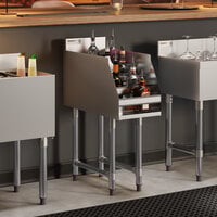 From cocktail stations and liquor display racks to glass rack storage and add-on units, this stainless steel underbar equipment is sure to increase your space-efficiency and make your bar more convenient for staff. Each unit comes in a different size, so you can tailor it to be flush with your counters and other equipment, too!