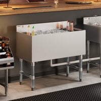 Underbar equipment will streamline your back bar area and provide necessary stations and areas for your bartenders to work. We carry underbar ice bins, blender stations, sinks, drainboard units, and more! This equipment will organize ice and liquor, designate stations for mixing and blending drinks, and prevent your washing area from contaminating your prep area.