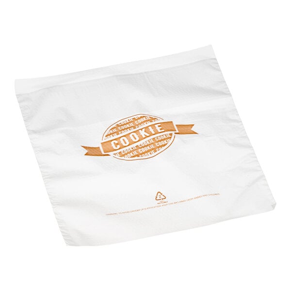 This Choice 5 1/2" x 5 1/2 "Cookie" printed plastic deli saddle bag is a must have for any bakery, cafe, or market. This bag keeps your patrons' food free from airborne contaminants and allows you to package cookie orders tailored to each customer. It's made of durable, .5 mil thick HDPE plastic so you can pack up your patrons' food and ensure it stays protected and secure.