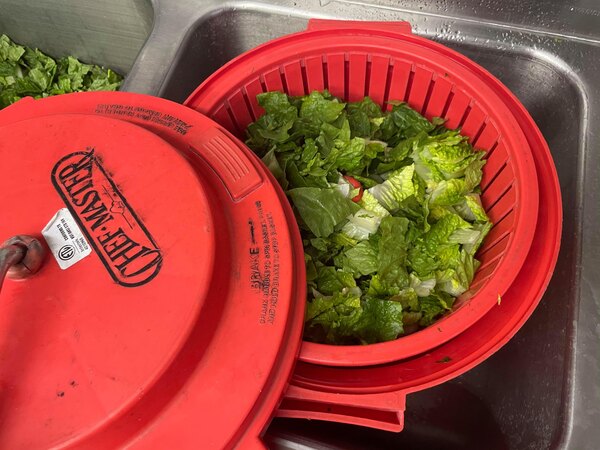 This thing is the best! We put up with cheap household type salad spinners, breaking every few months, then I came across this one from the Webstaurant. You can rinse lettuce and spinach in no time. It's easy to cleanup too!