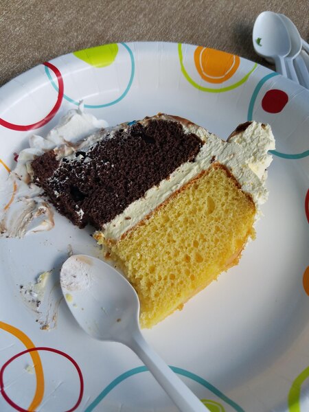 This cake mix is a bit dry and flavorless, but works for us well because we cover it and ice cream! I add a little oil to the mix to help with the dryness.
