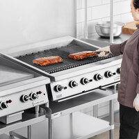 If you are short on space in your kitchen and back-of-house areas, a countertop commercial charbroiler will conveniently fit on tables or prep counters to save valuable floor space. Floor model restaurant charbroilers, on the other hand, are closer in size to a range or fryer and are ideal for large diners or steakhouses. Finally, modular top charbroilers can be installed directly into your countertop and allow you to customize your cooking space.