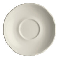 Homer Laughlin by Steelite International Carolyn ivory china dinnerware has a sophisticated look that is perfect for upscale restaurants and banquet halls. These products have elegantly scalloped rims, making them an excellent accompaniment to traditional and vintage table settings. Additionally, the color of this American white china dinnerware helps add to the vintage and sophisticated look.