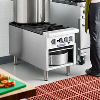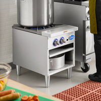 Stock pot ranges are built to withstand the weight of heavy cookware while heating large amounts of liquids, making them the perfect options for cooking up soups, boiling pasta, or creating sauces in your commercial kitchen. These products are small, but they have a high BTU output that allows them to heat up large quantities of liquid quickly. We also offer several induction-ready options that are ideal for cruise ships and banquet halls that want to do display cooking because there is no open flame.