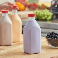 77Case8 Lid ColorsCaptiva Containers 32 oz. Square Milkman PET Clear Juice Bottle with Red Lid - 77/Case